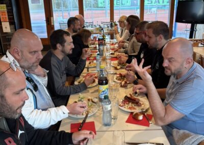Beim anschliessenden Apéro wurde auf die gelungene Saison angestossen, bevor Grillmeister Hubi die Glut perfekt im Griff hatte und uns mit feinen Grilladen verwöhnte. Das üppige Salatbuffet – liebevoll zubereitet von Sonja, André und Sandro – rundete das Festmahl ab.