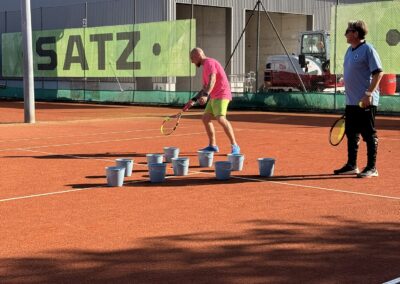 Und als alle satt und zufrieden waren? Ab auf den Platz! In lockerer Runde wurde Tennis gespielt, sodass sowohl kulinarisch als auch sportlich alle auf ihre Kosten kamen.