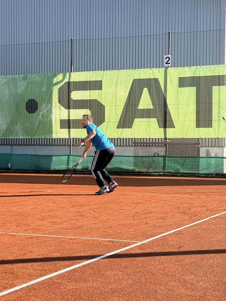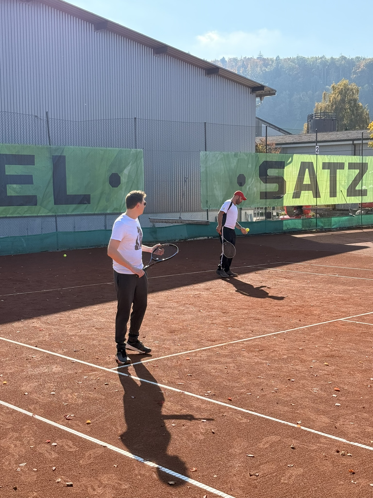 Nach einem kurzen Warm-up starteten wir in sieben Runden Plauschtennis – mit viel Einsatz, noch mehr Lachen und dem einen oder anderen spektakulären Ballwechsel (zumindest laut den jeweiligen Augenzeugen 😄).